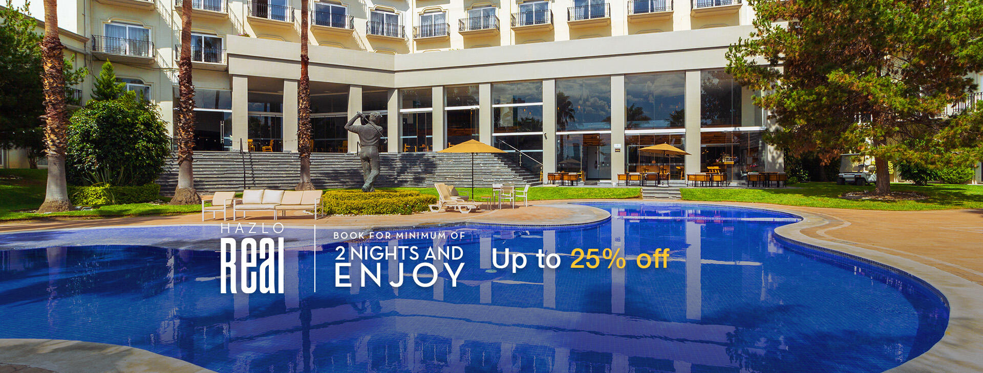 The discount is valid only for reservations with a minimum stay of 2 (two) nights.The discount is already applied to the public rate called “Más Noches-Paga Menos.” Rates are per room, per night, according to the selected occupancy, and are offered under two plans: EP (room only, no meals included) and BB (breakfast included). Taxes are not included in the published rates. An additional person charge will apply in accordance with each hotel’s policies.This promotion cannot be combined including but not limited to with other promotions, offers, discounts or agreements and does not apply to reservations of more than 10 (ten) rooms.Certain dates may be subject to additional restrictions. All reservations are subject to hotel availability and must be made in advance.By enrolling in the Real Loyalty program, guests may receive an additional 15% (fifteen percent) discount on the promotional rate, in accordance with the program’s terms and conditions.Reservations may be made by calling 800 90 123 00, through caminoreal.com, or via the Camino Real Hoteles mobile application .In the event of any doubt regarding the application or interpretation of the terms and conditions of this promotion, the Spanish-language version shall prevail.